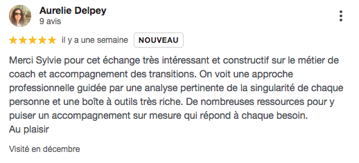 "Un grand merci à Sylvie DUCHENE, pour sa patience, son sens de l'humour, son écoute et ouverture et surtout pour les coups de pouce sur les périodes où je n'étais pas bien. Un bilan de compétence avec une coach si pro, c'est super ...Encore MERCI et à bientôt" - LB-58 ans - Ingénieur en électricité- Aout 2024
