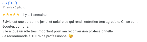 "Un grand merci à Sylvie DUCHENE, pour sa patience, son sens de l'humour, son écoute et ouverture et surtout pour les coups de pouce sur les périodes où je n'étais pas bien. Un bilan de compétence avec une coach si pro, c'est super ...Encore MERCI et à bientôt" - LB-58 ans - Ingénieur en électricité- Aout 2024